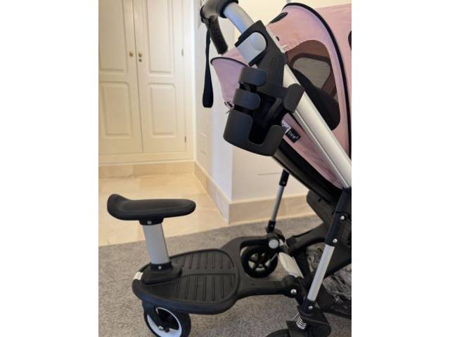 Incl. summer UV protection canopy (normal canopy also included), summer seat cushion, cup/bottle holder, rain cover and ride-on seat for sibling.