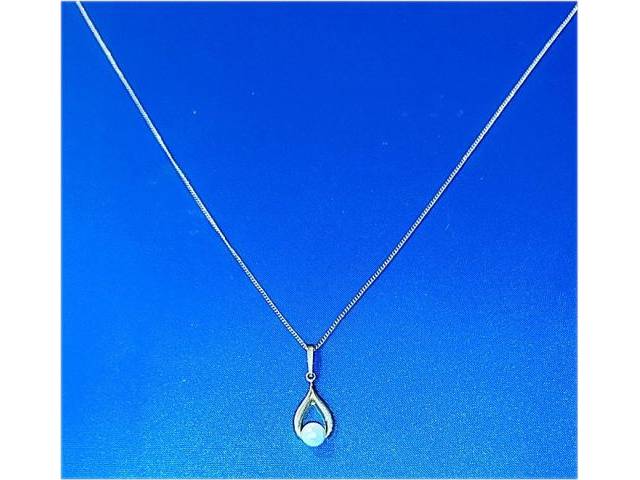 Necklace with pendant 8K gold in teardrop shape with Akoya pearl