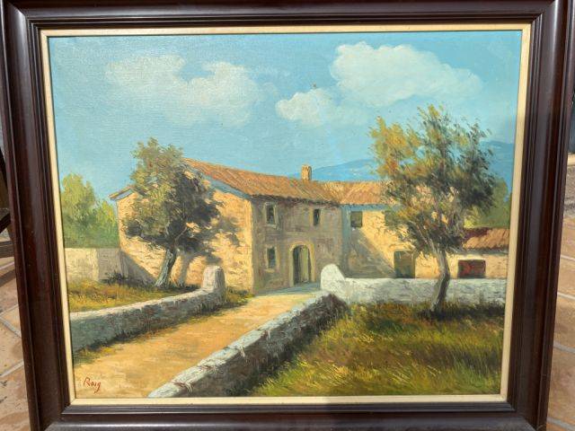 Sell here an oil painting on canvas with a wooden frame. Size frame 85x73 . Please name a bid.