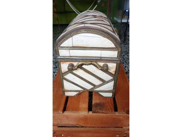 Vintage jewelry box. Wood, brass, bone.