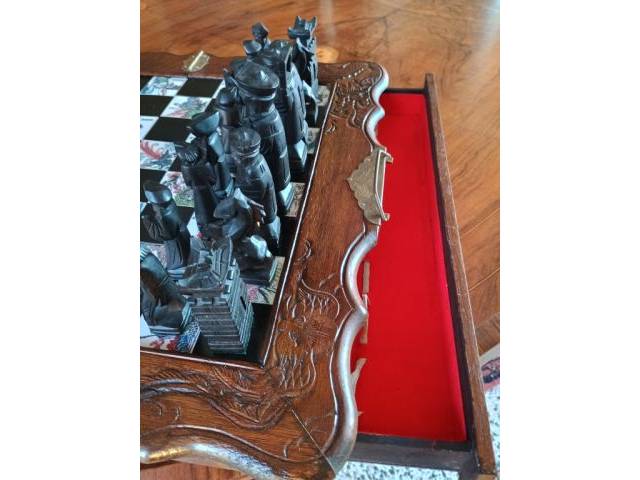 Beautiful Asian wooden chess set, board size 36cm x 36cm, piece size 7 - 10 cm.