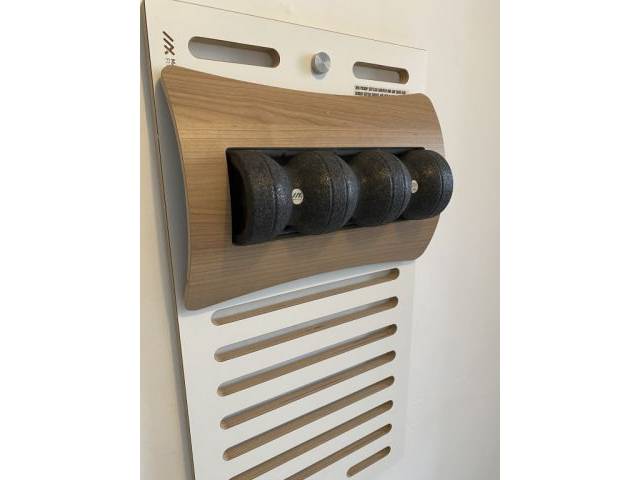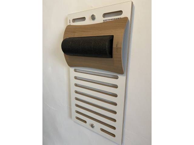 Original price approx. 350,00€. Easy mounting of the LeanBoard on the wall. The wood-coloured holder for the wheels can be easily clamped to the LeanBoard, but is also suitable for floor training.