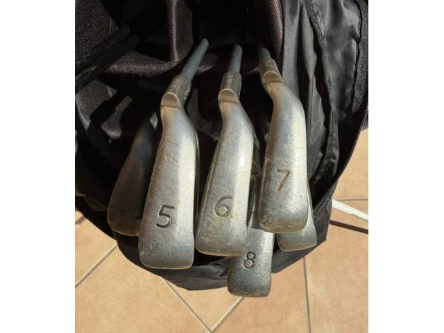 The golf club set includes a complete iron set 5, 6, 7, 8 + 9, putter as well as various drivers