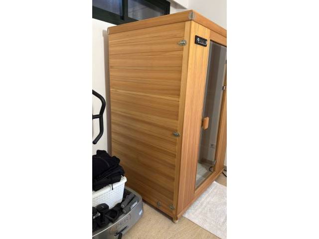 We are selling our beloved infrared sauna due to a move. The sauna must be picked up in Bendinat by 10.04. It is very easy to disassemble and reassemble with quick-release fasteners. See pictures. It also has color light therapy on the ceiling with various colors. The sauna is 1 m deep, 1.20 m wide and 1.85 m high and fully functional. The price is €600 negotiable.