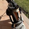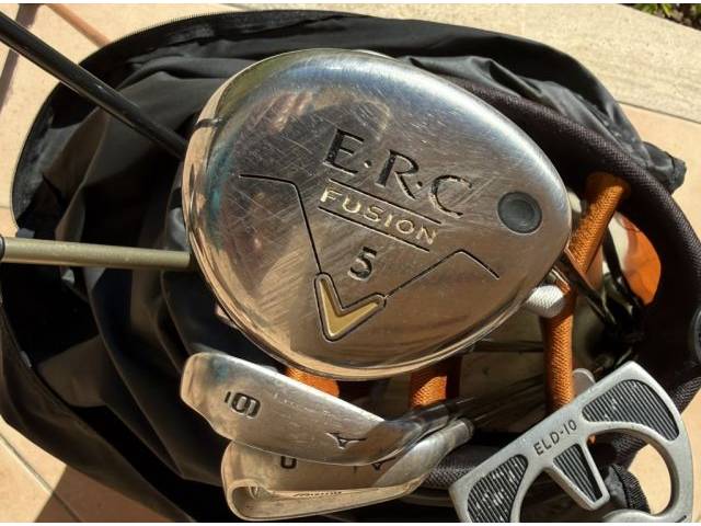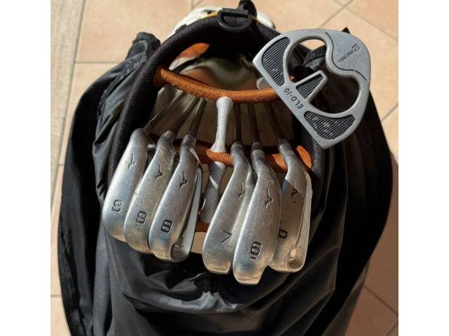 The golf club set includes a full iron set 5, 6, 7, 8 + 9, putter and various drivers