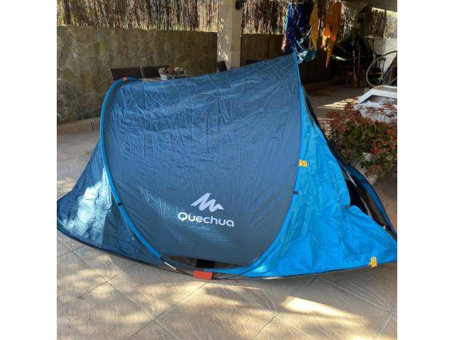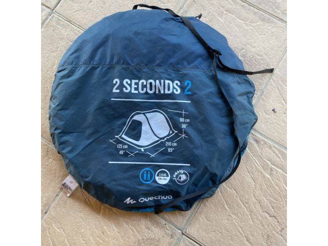 Quechua 2 Seconds tent, ideal for getaways, for 2 people - measures 125x210x98. It is assembled and disassembled in seconds. Yes, you know how, but there are instructions :). Used once, store like new, including ropes and pegs. Only zipper does not work from the cover.