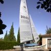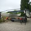 with trailer, slip trolley and galvanised transport box. Special racing rudder made of GRP, adjustable GRP tiller, rake block, runners undamaged and tight, ready to sail