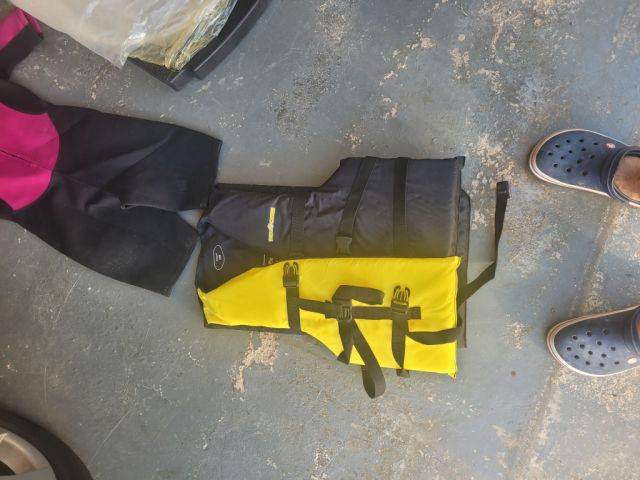 Older model water skis approx. 160 cm with vest and shorty, size S, in Cala Murada.