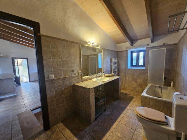 Authentic and lovingly renovated finca. Stunning island-wide views. Living and sleeping areas are distributed over 2 levels. Very idyllic fireplace and living room on the ground floor, one room on the upper floor. Kitchen with large pantry. The 4 bedrooms are not small and mostly have built-in wardrobes. Two bathrooms plus an outdoor bathroom for the pool area. Good connection to the airport in about 25 minutes. Manacor in about 10 minutes. Oil central heating, fully equipped kitchen, partially fenced. Carport, private well, pool, solar panels for solar - very large system!!! Additionally a generator - quiet. German TV, internet.