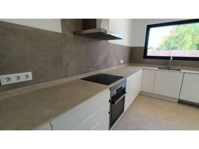 Equipment: Underfloor heating and central AC (hot – cold) with aerothermal system, continuous and bright microcement floors, furnished white fitted kitchen with all electrical household appliances, bright rooms with many windows, built-in wardrobes, internet pre-installation, insulated roof and walls, double glazing, Persian doors on 1 bedroom and washing machine room on the ground floor, municipal water, selected materials of high and good quality.