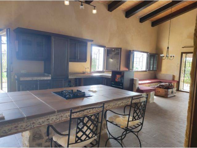 Large covered terraces, 50 cm thick stone walls, PVC windows with double glazing, partial interior stone cladding and a roof insulated with sandwich panels ensure a pleasant living climate and Mediterranean charm.
