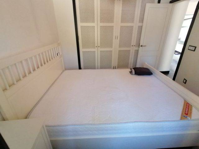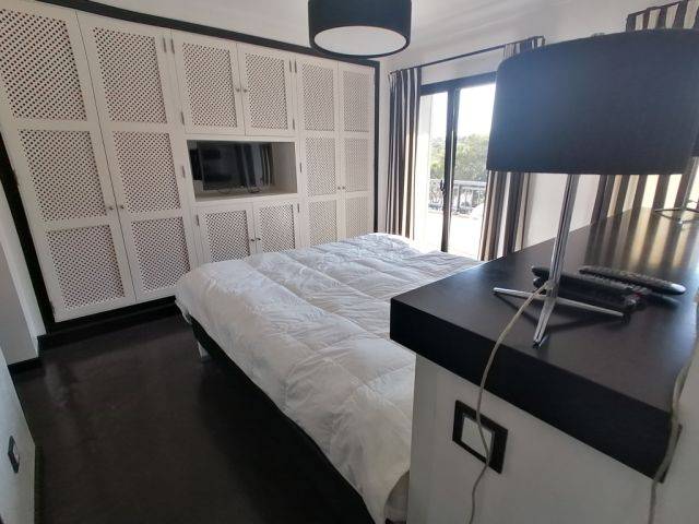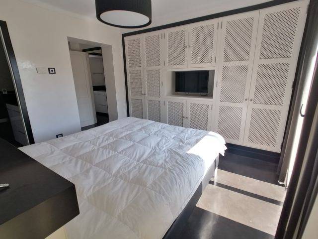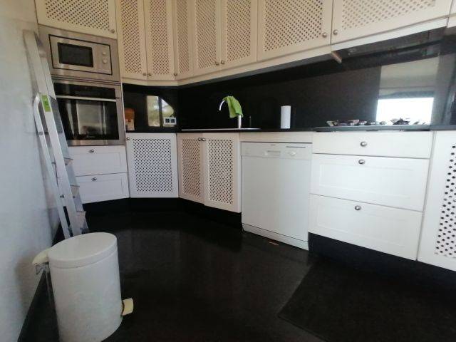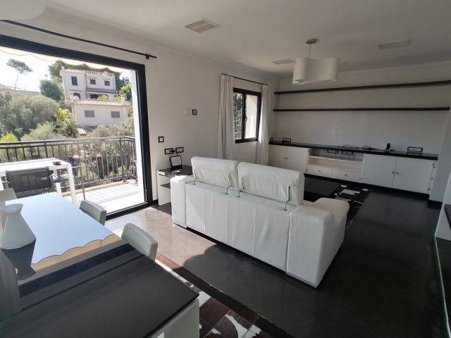 Equipment: alarm system, polished - white microcement walls and floors, double glazing, internet, electric underfloor heating, 2 x AC (hot-cold), electric towel rail in the bathrooms, SAT TV with Smart TV, aluminum shutters, city water, water softener, bright rooms, hot water via solar planes. Modern and minimalist furnished in black and white - but also partially or unfurnished can be rented.