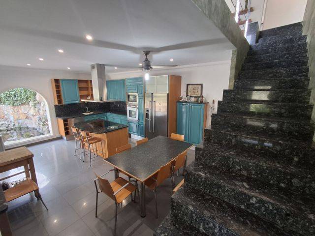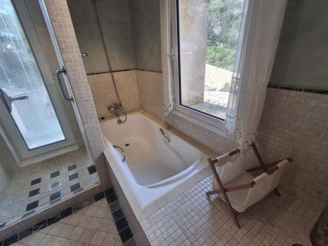 Plot: Private, walled and partly fenced plot of 14,119 m2 with electric gate entrance, low‑maintenance garden with many plants and lemon trees around the house, outdoor shower, BBQ area, a large covered terrace of approx. 35 m2 on the ground floor and another of the same size on the 1st floor - uncovered and also accessible from the garden, private parking spaces, small inner courtyard. The almost oval pool of 14 x 3 m is located a little away from the house - approx. 100 m2. Facing northwest. Asphalted access gravel road with a fairly steep incline, as it is located almost on the mountain.