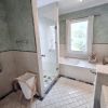 The ground floor has approx. 115 m2 living space with 2 kitchens (an older one from earlier times with gas burners and an open fireplace and an adjoining cozy dining room with a closed fireplace, as well as a new fitted kitchen in mint‑brown tones with all appliances (ceramic hob, refrigerator, microwave, electric oven and dishwasher)) and from here a staircase leads to the 1st floor. There is also a guest toilet and a bright and generous laundry room with washing machine and exit to the inner courtyard with BBQ and outdoor shower. From here access to the garden is also possible.