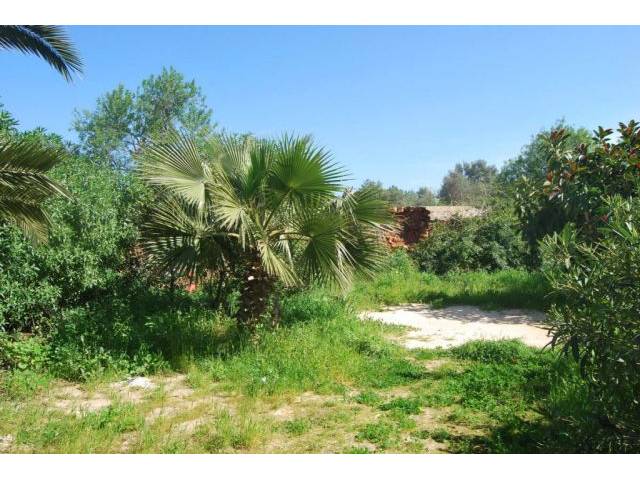 The fenced and walled plot measures approx. 150 m2 and is divided into a garage of approx. 30 m2, a courtyard with an external staircase to the large covered terrace of approx. 30 m2 (facing east) and the garden behind it with palm trees and shrubs. Water connection in the courtyard.