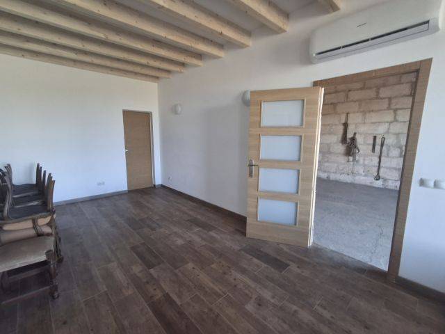 The large garage with converted apartment is located on a fenced plot of approx. 1,100 m2 with various fruit trees. There are two entrances to the apartment – one via the garage and one directly via the courtyard / rear entrance, where a parking space for one car is also available.
