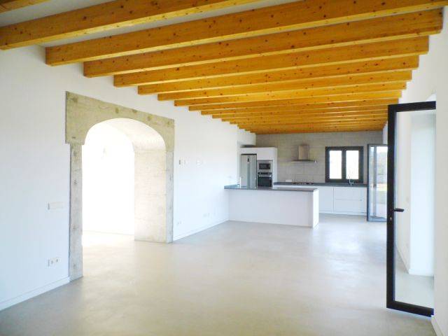 Equipment: The two apartments are each prepared with an installation of kitchens and can be built-in. The houses and apartments are equipped with double glazing, polished and waxed concrete floors, walls made of exposed concrete ( but still possible to have them painted ), 1 pre-installation for fireplace in the main house, iron staircase, white lacquered interior doors, Spanish TV antenna and satellite dish, Internet WIFI via radio antenna possible, 4 x air conditioning ( 2 x in the main house and 1 x each in the apartments ), electric underfloor heating ( cold and hot ), GESA electricity, own water, hot water by electric boiler. Unfurnished.