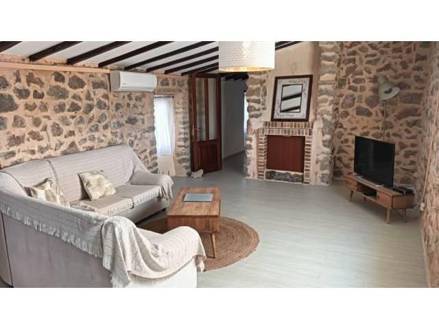 Equipment: Grey – white laminate floors, double glazing, SAT TV and Spanish channels, Internet fibre optic connection of 300 MB, 5 x AC ( hot - cold ) in various rooms, GESA electricity, own well water, hot water via 2 electric boilers. 100% furnished in rustic style. It is possible to take out a bed (max. 2 bedrooms) to create an office or something else.
