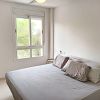 The apartment is located on the 1st floor of an 8-unit building and has a covered small balcony with views over the fields and a northeast orientation, as well as a communal terrace, a private underground parking space of 14 m2 and a small storage room of 4 m2.