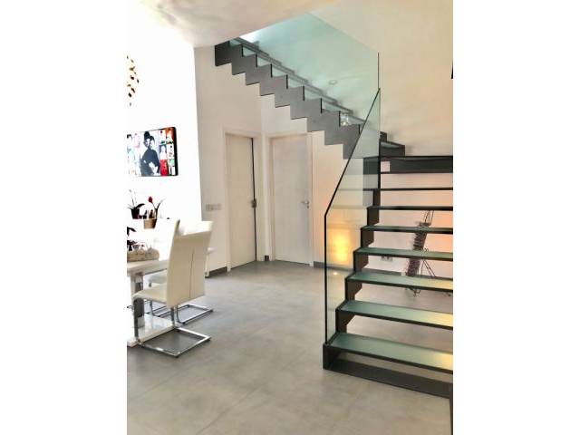 The fully furnished and equipped house is distributed over 3 floors and has a total of 2 double bedrooms and 3 full bathrooms (one in the pool area).