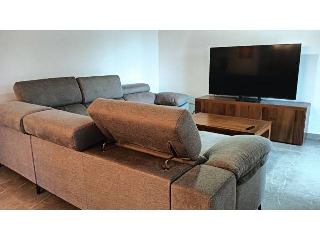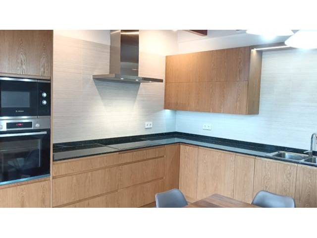 Ground floor: living, dining room with adjoining furnished fitted kitchen which is equipped with electric. Stove, ceramic hobs, extractor hood and microwave and adjoining a washing machine room with connection and a machine room.