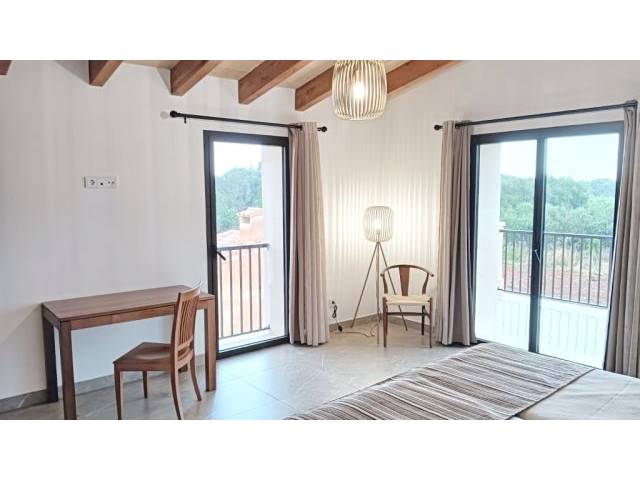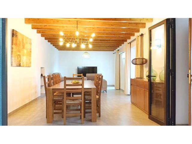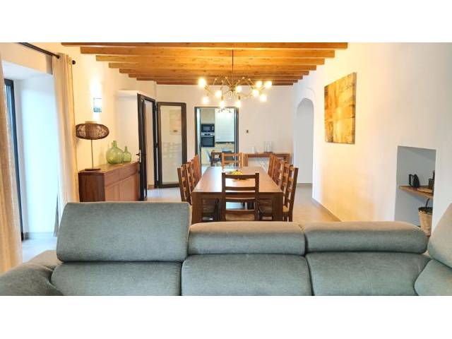Equipment: Spacious and bright rooms with large window fronts, high ceilings and exposed beams, double glazing, grey floors integrated with white panelled stones, satellite TV (connections in all rooms), internet line, underfloor heating and hot water via aerothermics, 5 x AC (cold-warm) in the bedrooms, GESA electricity, energy certificate B, own well water. Completely new and modernly furnished.