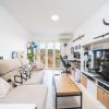 It features a cold/heat air conditioning system and a powerful fireplace in the living–kitchen–dining area, perfect for the winter months.