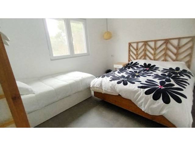 Features: Light floor tiles, manual blinds, mosquito protection, alarm system with video surveillance, 2 x AC (hot-cold) in the master bedroom and living-dining room (if desired, the owner can install 1 - 2 more units and there may be a pre-installation for a wood stove) — overall there is a very good indoor climate, as walls and roof are insulated and windows and doors are double-glazed. Municipal water, GESA electricity, washing machine and dishwasher, sufficient ceiling fans, fiber-optic Internet line of 300 Mb, Smart TV (an additional TV connection is available in the large master bedroom), plenty of lights in the house creating a pleasant ambience, hot water via a 200 l electric boiler, modernly furnished - but can also be rented partly to unfurnished. The house is practically a new occupation. Quiet location, only one neighbor next door and one diagonally opposite.