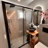 Outdoor area: Completely fenced plot of 650 m2 with mostly paving and gravel - therefore very low-maintenance - however there are also some hedges, shrubs, a large pine and 3 beautiful mimosas, a small children's pool, plenty of water taps, a covered front terrace accessible via 2 steps, another covered lounge area with BBQ and fridge, outdoor shower (hot-cold) at the back of the house. Upper roof terrace reachable via rather small steps and from there you have a nice partial sea and mountain view. Part of the tool/storage shed can be shared where the owners keep their summer equipment. A small laundry room with washing machine / dryer and a separate clothesline is also located behind the house. Municipal water pressure equalization pump.
