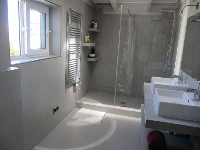 The upper floor can be reached via 2 flights of stairs and there are 2 bedrooms with enough built-in wardrobes and modern bathrooms as well as a gallery room, which could be used as an office or bedroom. The next floor has a roof terrace of about 50 m2.
