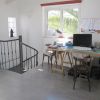On the lower floor there are 3 exits to the terraces (back and front), which are nicely overgrown/covered. The patio at the entrance is completely hidden. The entrance door has a bell and automatic opener, which can be opened by telephone query in the kitchen.