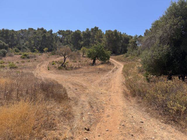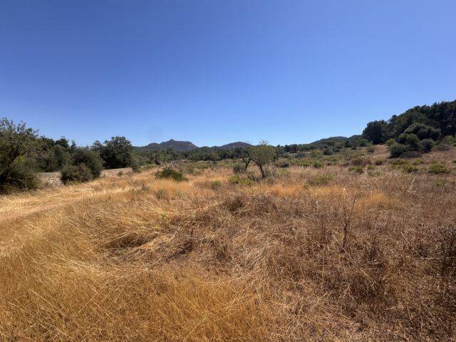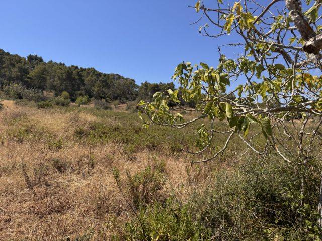 The walled large plot of 22,937 m2 is partly hilly and wooded and partly rather flat with only a few shrubs and some almond and fig trees.