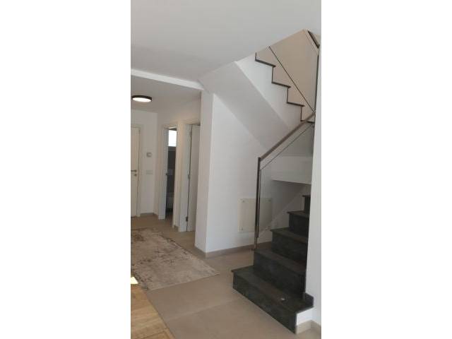 Walk-in closet in the master bedroom as well as large built-in white wardrobes in every bedroom. Security entrance door and alarm system with camera. Coat closet in the hallway. Marble staircase leading to the second floor with anti-slip coating. Powder-coated white infrared heater additionally in the living room. Ceiling outlet in the living room. Large custom-made designer blinds as sun protection. TV shelf on the wall. Utility/laundry room with drain. Washing machine AEG + dryer Bosch. All new. Electric gate with space for 2 cars on the property. Lockable shutters in front of each window with a locking function for opening in wind and weather.
