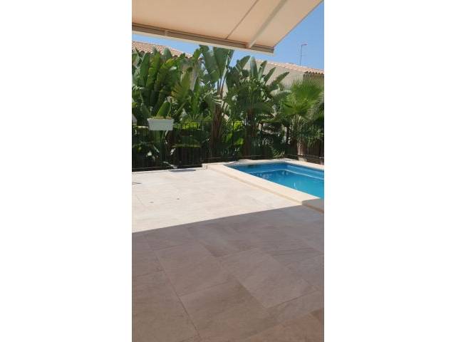 A pool attendant and gardener can be taken over on request. Large terrace with anti-slip coating, color-coordinated with the pool. Automatic awning, all new. South-facing and therefore sunny all day. Very stylishly designed L-shaped garden with automatic irrigation. Every window has fly screens, roller blinds or sliding accordion doors at the doors.