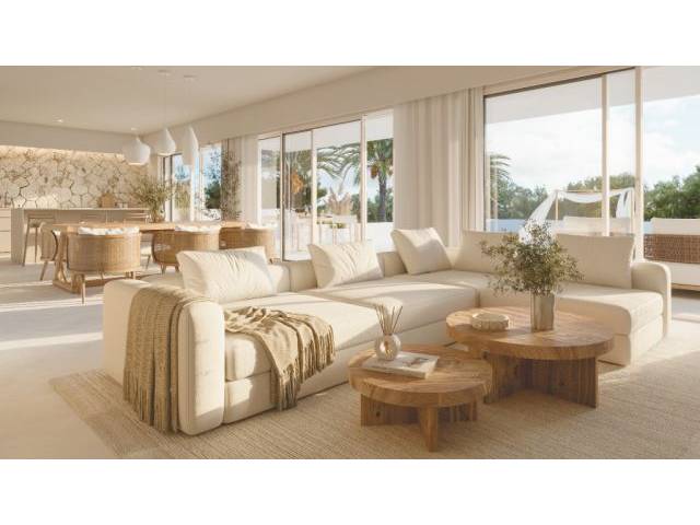 The architecture of the house pays homage to Cala d'Or's characteristic Ibizan style, with rounded walls, interior arches and an elegant combination of stone and Mediterranean gardens. Every corner reflects the essence of the island and its coastal atmosphere, giving you a unique experience in the heart of this charming town.