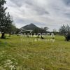 Architecturally, the project has been designed to harmonise with its natural surroundings using local stone, light tones, and extensive glazing to maximise natural light and views. The villa’s open-plan living spaces connect directly to covered terraces for al fresco dining, while the upper level enjoys uninterrupted sea and mountain vistas. The total roof area measures 250.53 m², combining pitched and flat sections for an elegant, contemporary finish. The total site occupation is 423.56 m², which includes terraces and the paved access ramp to the garage.