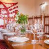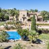 The house, with 400 m², is laid out in spacious rooms with stately details such as arches and exposed beams. It has five en-suite bedrooms and a total of six bathrooms, as well as bright living areas that convey elegance and comfort.