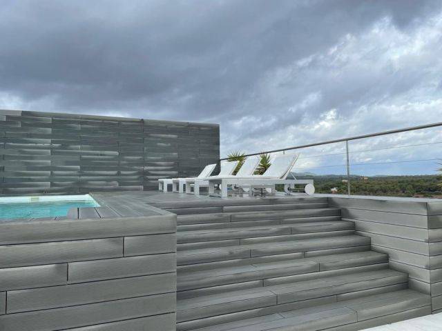 Communal areas with swimming pool, gym, relaxation area, sauna, showers and bathrooms.