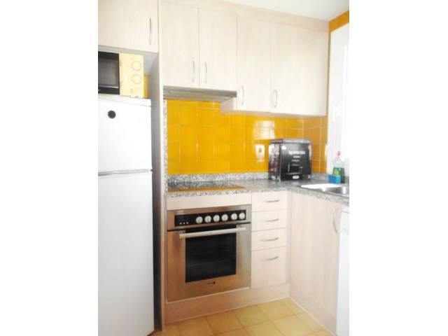 Premises: The ground floor apartment of approx. 64 m2 living space has a living-dining room with kitchenette and is equipped with ceramic hobs, refrigerator, electric oven, microwave, dishwasher and exit to the covered terrace and the communal garden. Hallway with built-in wardrobe, 2 double bedrooms with fitted wardrobes (one of them with bathroom en suite bath / shower ) and 1 bathroom with shower.