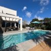 The garden features an approximately 8 x 3.50 m saltwater pool with lighting. The high-quality landscaped garden with many different plants, shrubs and trees offers sunny as well as shady spots thanks to its southeast orientation. In addition to a large terrace with a lounge area, there is a dining area and a wooden deck by the pool.