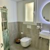 On the upper floor there are two bedrooms with fitted wardrobes, each with a balcony, and two further shower bathrooms. From the upper floor you reach the approximately 40 sqm roof terrace with sea view via a fixed indoor staircase.