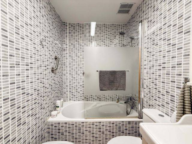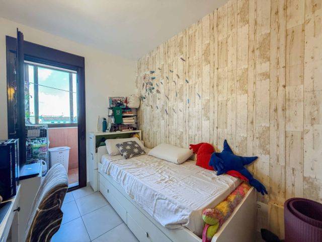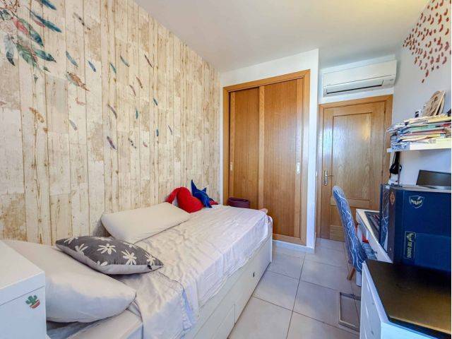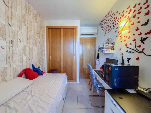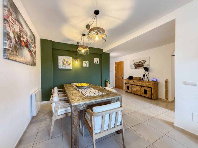 With 105 m², the property offers a functional layout: a welcoming day area with a bright living-dining room and air conditioning in all rooms, and a fully equipped independent kitchen, accompanied by a practical laundry room. The rest area has three bedrooms, all with built-in wardrobes of the same size, plus two full bathrooms with bathtubs, offering comfort and privacy for the whole family.