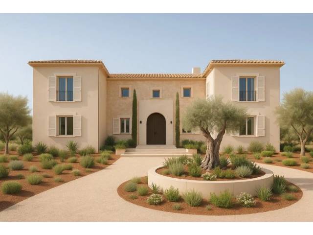 This architecturally sophisticated country house project is located in a highly sought-after area between Ses Salines and Santanyí, in the heart of Mallorca's picturesque southeast. Surrounded by the region's characteristic natural beauty, the plot offers the perfect setting for a stylish and tranquil retreat.