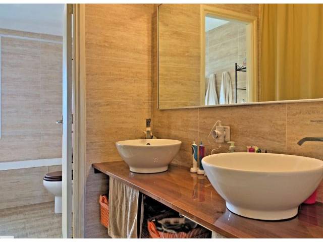 On the main level is the entrance with present terrace. Then you enter a living/dining room with exit to a spacious terrace with a breathtaking view of the bay and the fully equipped kitchen. From the terrace, a staircase leads to a private garden and a small path down to the sea, where you can choose between rocky coastline or a nearby sandy beach. On the upper floor there are 3 double bedrooms and a bathroom. Two of the bedrooms have sea views, one of them has a dressing room.