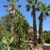 The house is framed by a dreamlike garden with palm trees, lemon trees, a fig tree, cypresses and other plants.