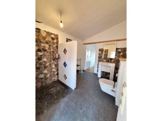 The wood-burning fireplace in the living room was renewed in 2021. The house also has radiators that are operated with butane gas bottles.