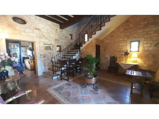 Outside: The walled and fenced plot of approx. 7,100 m2 has an automatic entrance gate, plenty of parking spaces in addition to a semi-open carport of approx. 70 m2 for up to 4 cars, a beautiful and well-kept garden with lots of meadows, many palm trees and ornamental shrubs. Antique decorations and interesting areas on the property complete the whole. We also find a beautiful fountain, an interesting stone group seating area for up to 16 people, a beautiful Roman bridge where in the lower area - down some stone steps - there are large columns and arches as well as a large uncovered terrace.