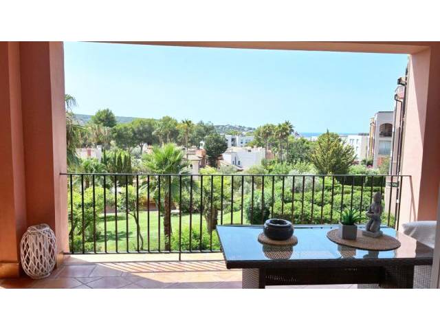 This modernized apartment on the 2nd floor of a gated residential complex with Mediterranean architecture offers an elegant home in the popular Santa Ponsa Nova in southwest Mallorca.