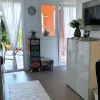 The heart of the apartment is the open living area with a modern kitchen, island, dining area and comfortable seating. Floor-to-ceiling windows open onto the large terrace, which offers a wonderful view of the Mediterranean gardens and the sea. In addition, there is a small balcony off the living room.