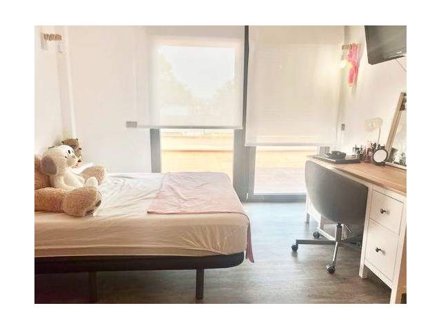 Exclusive ground floor apartment with two terraces, pool and two parking spaces in La Vileta In one of the quietest and most sought-after areas of Palma is this elegant 110 m² ground floor apartment that combines comfort, design and a privileged location. The house has three bedrooms with fitted wardrobes and two bathrooms (one of them en suite) with marble floors for a touch of elegance. The spacious living room with direct access to one of the terraces blends seamlessly with the German Schmidt kitchen, which is equipped with high-quality materials and appliances. Enjoy two impressive, sunny terraces of 37 m² and 26 m²: • One overlooking the pool and communal gardens. • Another with partial mountain views and access from two of the bedrooms. Built in 2009, the building offers few neighbors, green areas, a swimming pool, an elevator, two allocated parking spaces and a private 3.6 m² storage room. Community fees: €114/month. In the immediate vicinity you will find a Müller supermarket, a bus stop and all the main services. A perfect home for those looking for quality of life, tranquility and excellent connections to Palma.